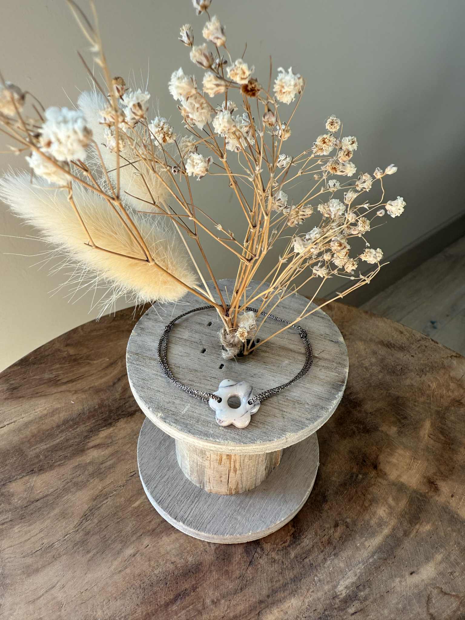 Grâce à son cordon ajustable, ce bijou s’adapte facilement à tous les poignets
