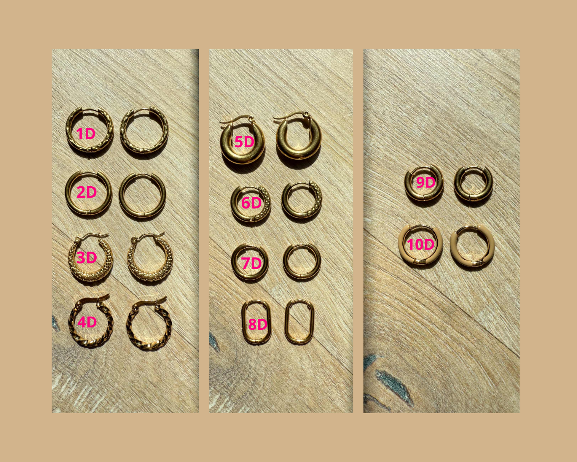 Créoles en acier inoxydable 304 & 316 ou 316L- plusieurs textures & diamètres-