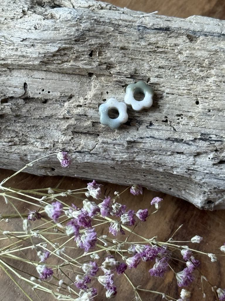 Ultra Mini pampilles "Romane" fleurs 6 pétales de 0.90cm de diamètre recouverte d'une fine couche de résine UV.